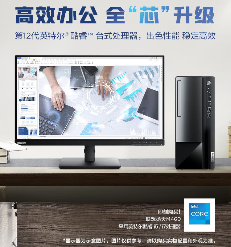 聯(lián)想M460臺式電腦i5-12400/8G內(nèi)存/512G固態(tài)+23.8英寸高清顯示器